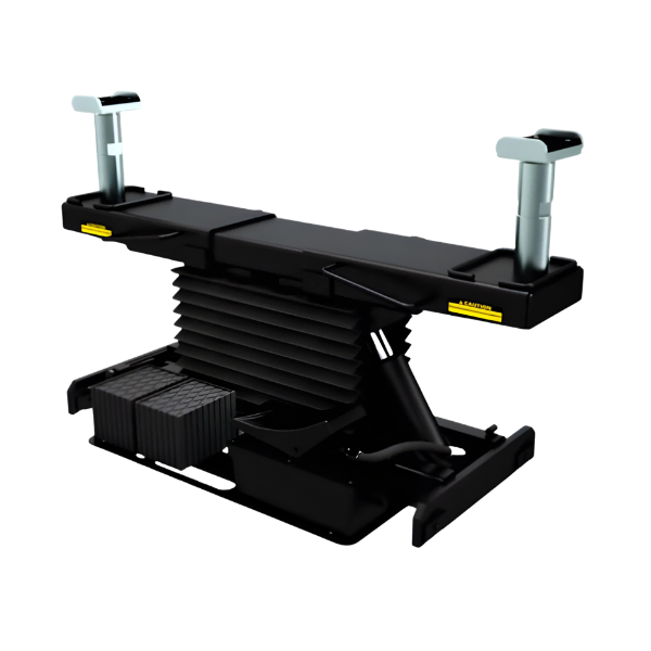 The Rolling Bridge Jack RJ7100YBK is Rotary’s premium 7,000-lb air-powered scissor jack designed to give technicians instant wheels-free access on a four-post lift. If your shop performs brake service, suspension repairs, tire work, or undercarriage inspections, this bridge jack is one of the most valuable accessories you can add. It dramatically expands what your 4-post lift can do without changing equipment or moving vehicles from bay to bay.