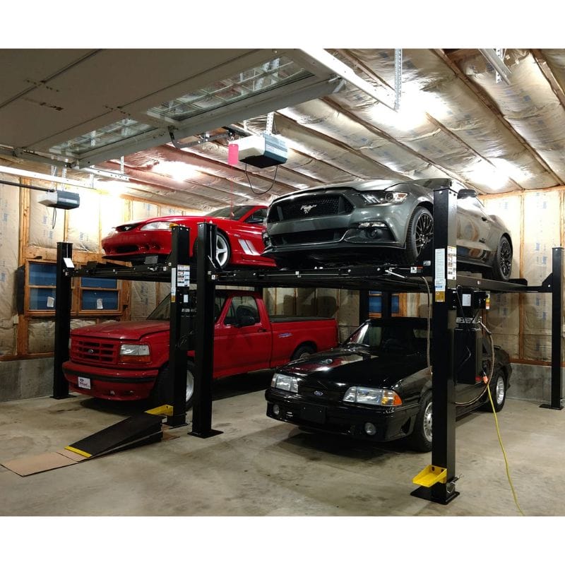 This lift is available for pickup at our two warehouse locations in Rosamond and Hayward, CA. Explore the image gallery to see how the Pro Park 9 Plus fits seamlessly into our customers’ garages and service centers. This 4 post garage lift design helps you double your parking space without resorting to costly construction.
