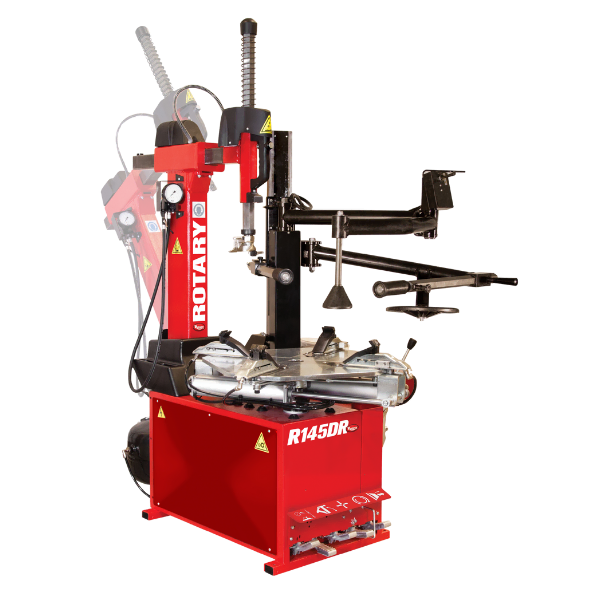 The R145DR is a tilt-back motorcycle tire changing machine built for performance. With Variable Speed Control (VSC), a pneumatically tilting column, and Fast Inflation (FI) technology, it handles low-profile, wide, and motorcycle tires with precision and safety.