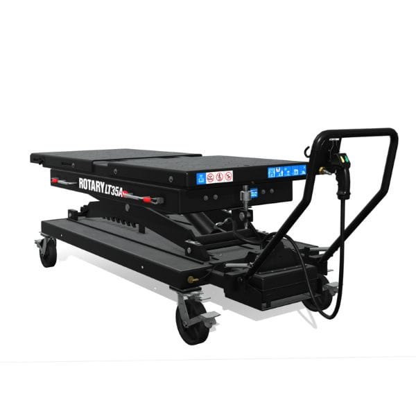 The Rotary LT35A EV Hybrid Hydraulic Lifting Table is purpose-built for electric vehicle (EV) and hybrid service tasks. With an impressive 3,500 lb. lifting capacity, it safely handles heavy EV components like batteries, motors, and powertrain parts. Built for durability, flexibility, and safety, the automotive lift cart minimizes physical strain, enhances workflow, and boosts productivity in automotive shops and industrial settings.