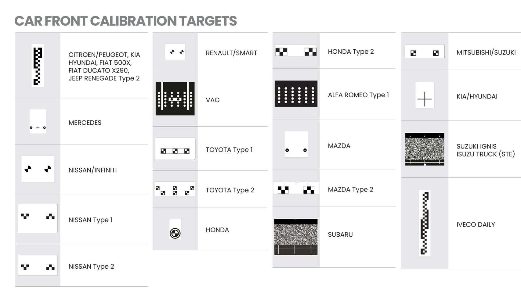 Base Mobile ADAS Calibrations + Front Facing Camera DIGITAL TARGETS and special Honda PANEL targets.