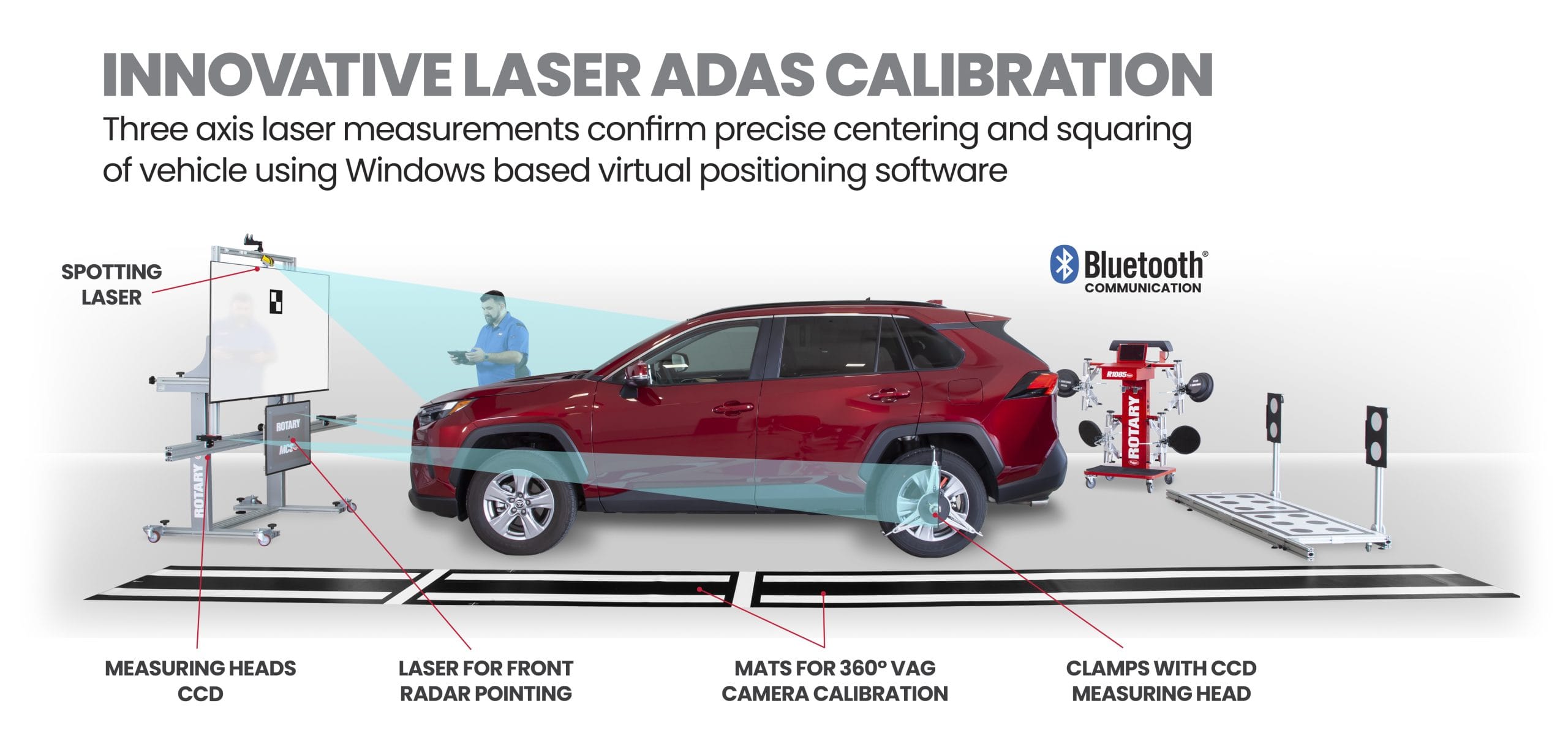 • Laser-Accurate Calibration: Includes Bluetooth lasers, digital levels, and spotting lasers for high precision.