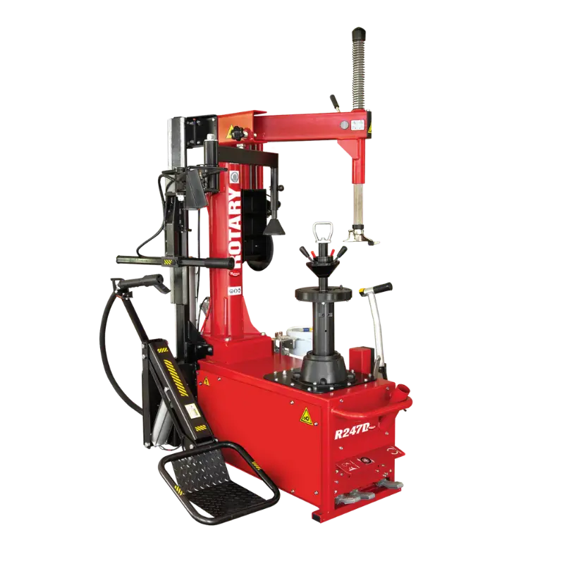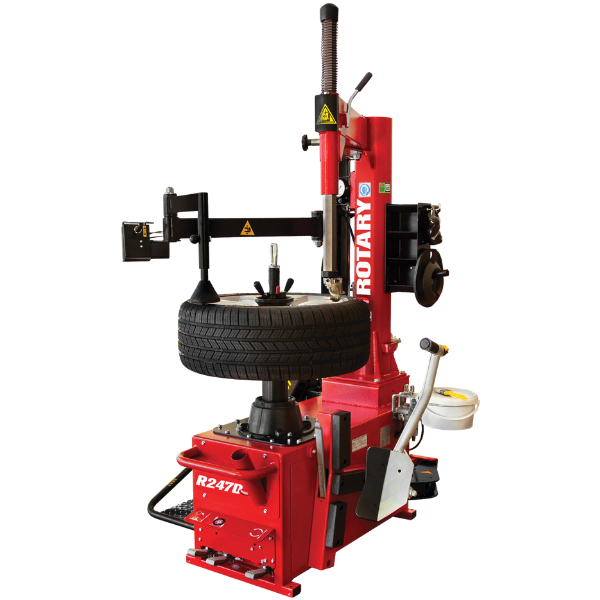 The Rotary R247D-CL Tire Mounting Machine is a high-performance machine designed for the busiest tire centers, featuring advanced productivity and safety elements for streamlined operation. Its center post swing arm design and quick-lock wheel centering adapter improve efficiency, making it the go-to choice for high-volume tire servicing. This tire changer reduces the risk of wheel damage while speeding up operations, making it a favorite among professionals.