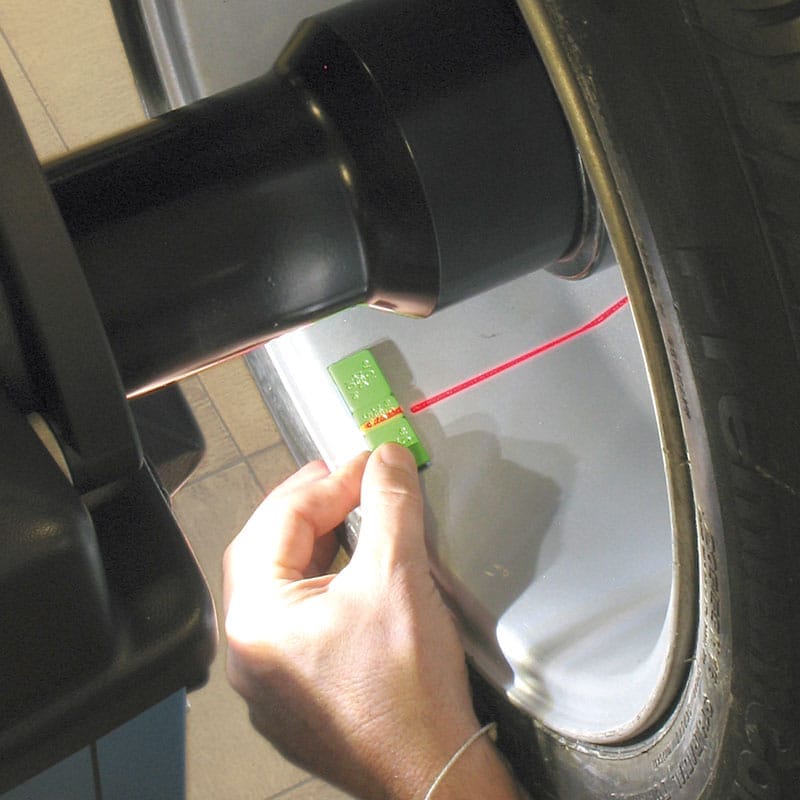 The Laser Blade shines down at the six o’clock position of the wheel to help accurately place stick-on weight.